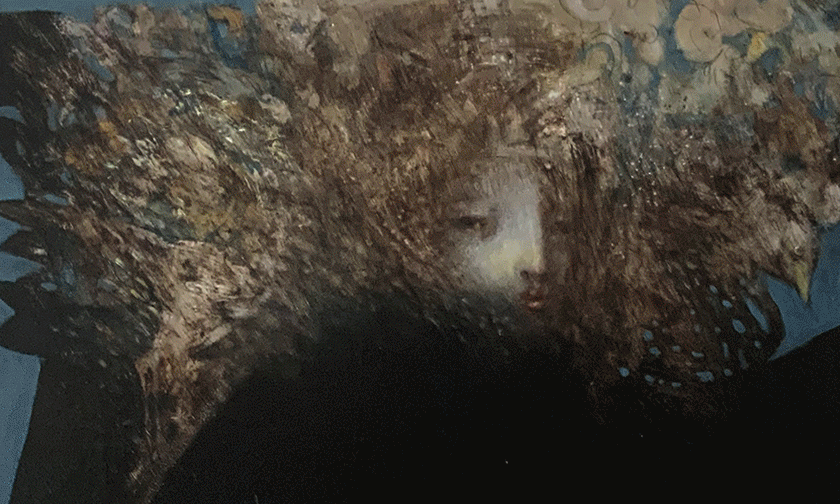 Ein Moment der Stille und des Innehaltens, so empfinde ich den Prozess beim Malen. Da entsteht wie von selbt eine Gestalt, ein Gefieder, ein Haus eine Farbstimmung, es gilt der Intuition zu folgen. Malen bedeutet auch, sich fallen zu lassen, aus sich selbst zu schöpfen. Eine Spur wird gefunden und dabei neue gelegt, die wiederum nicht alle gegangen werden, so ist das Bild letztlich eine Reduzierung auf das Wesentliche in sich selbst.
