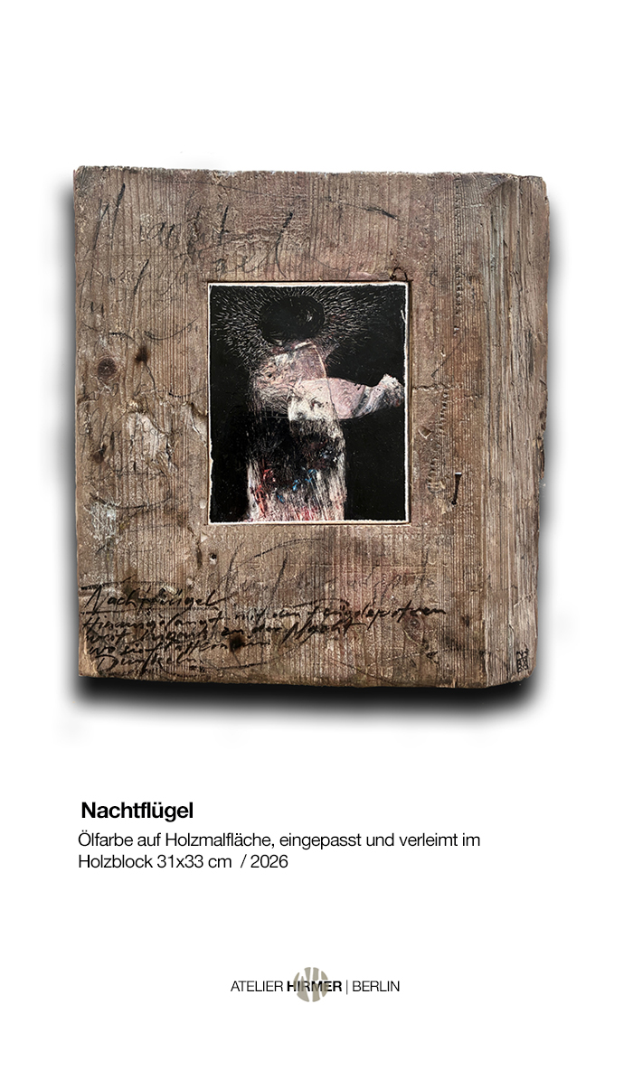 und des Innehaltens, so empfinde ich den Prozess beim Malen. Da entsteht wie von selbt eine Gestalt, ein Gefieder, ein Haus eine Farbstimmung, es gilt der Intuition zu folgen. Malen bedeutet auch, sich fallen zu lassen, aus sich selbst zu schöpfen. Eine Spur wird gefunden und dabei neue gelegt, die wiederum nicht alle gegangen werden. Man möge finden - vielleicht sich selbst.