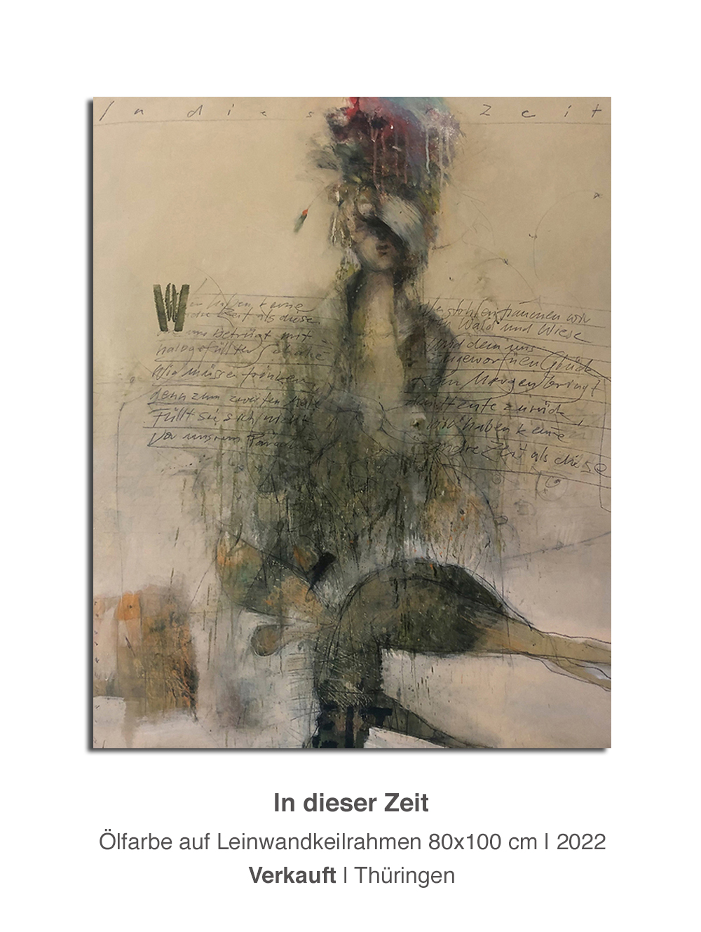 Ein Moment der Stille und des Innehaltens, so empfinde ich den Prozess beim Malen. Da entsteht wie von selbt eine Gestalt, ein Gefieder, ein Haus eine Farbstimmung, es gilt der Intuition zu folgen. Malen bedeutet auch, sich fallen zu lassen, aus sich selbst zu schöpfen. Eine Spur wird gefunden und dabei neue gelegt, die wiederum nicht alle gegangen werden, so ist das Bild letztlich eine Reduzierung auf das Wesentliche in sich selbst.