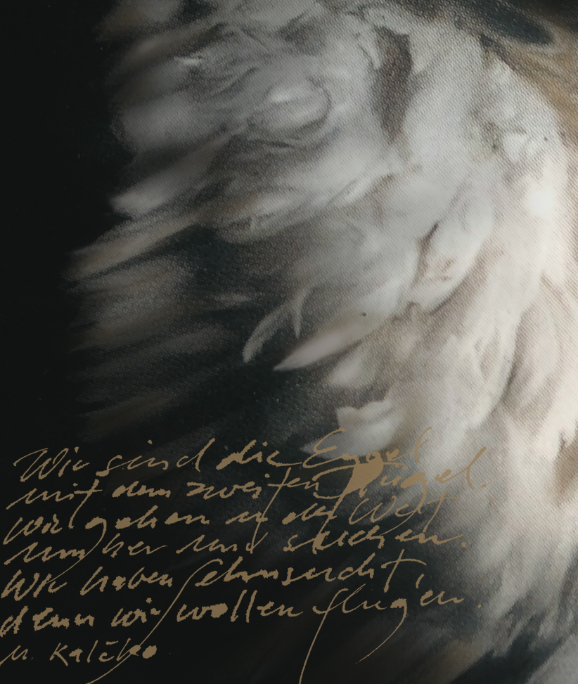 So empfinde ich den Prozess beim Malen. Da entsteht wie von selbt eine Gestalt, ein Gefieder, ein Haus eine Farbstimmung, es gilt der Intuition zu folgen. Malen bedeutet auch, sich fallen zu lassen, aus sich selbst zu schöpfen. Eine Spur wird gefunden und dabei neue gelegt, die wiederum nicht alle gegangen werden, so ist das Bild letztlich eine Reduzierung auf das Wesentliche in sich selbst.