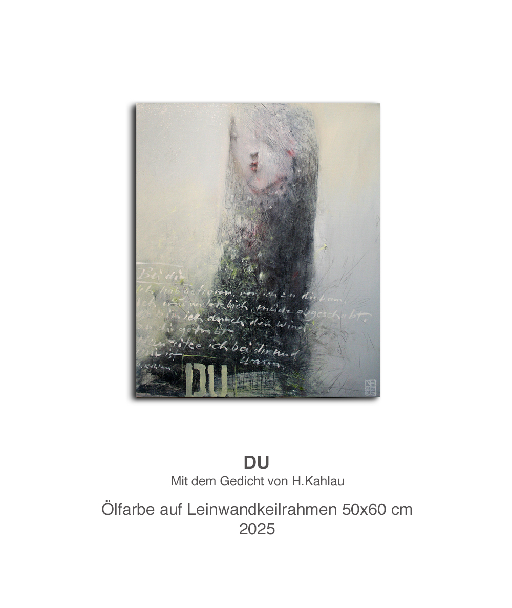 Ein Moment der Stille und des Innehaltens, so empfinde ich den Prozess beim Malen. Da entsteht wie von selbt eine Gestalt, ein Gefieder, ein Haus eine Farbstimmung, es gilt der Intuition zu folgen. Malen bedeutet auch, sich fallen zu lassen, aus sich selbst zu schöpfen. Eine Spur wird gefunden und dabei neue gelegt, die wiederum nicht alle gegangen werden, so ist das Bild letztlich eine Reduzierung auf das Wesentliche in sich selbst.