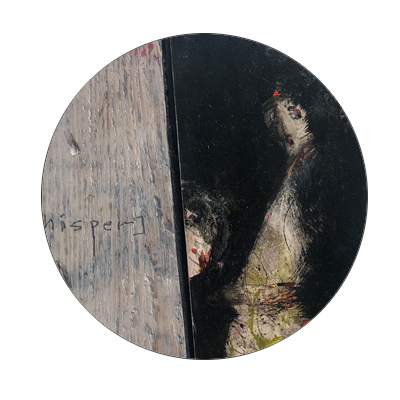 Die Holzblockarbeiten mache ich seit 2018, jetzt habe ich neue Arbeiten gemacht. Eingebettet sind Bilder von bemalten Holzmalflächen, zusammengesetzt und eingepasst in ein altes Stück massiven Holzbohle aus Berlin. Die Kombination mit der Leichtigkeit, Zartheit und auch Verspieltheit der Bilder mit der Schwere des Holzblocks empfinde ich als Künstler sehr reizvoll. Die Arbeiten sind zum hängen oder stellen.