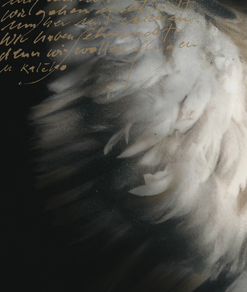 So empfinde ich den Prozess beim Malen. Da entsteht wie von selbt eine Gestalt, ein Gefieder, ein Haus eine Farbstimmung, es gilt der Intuition zu folgen. Malen bedeutet auch, sich fallen zu lassen, aus sich selbst zu schöpfen. Eine Spur wird gefunden und dabei neue gelegt, die wiederum nicht alle gegangen werden, so ist das Bild letztlich eine Reduzierung auf das Wesentliche in sich selbst.